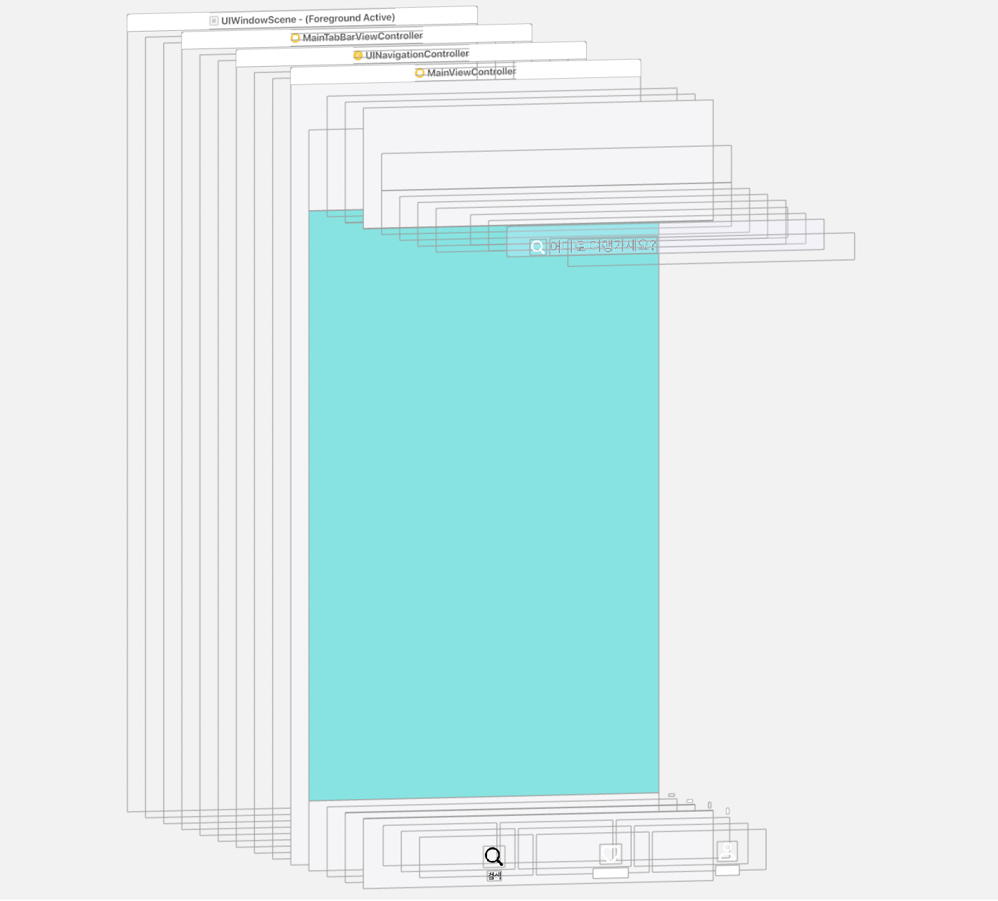 scrollView.leadingAnchor.constraint(equalTo: view.safeAreaLayoutGuide.leadingAnchor).isActive = true scrollView.trailingAnchor.constraint(equalTo: view.safeAreaLayoutGuide.trailingAnchor).isActive = true scrollView.topAnchor.constraint(equalTo: view.safeAreaLayoutGuide.topAnchor).isActive = true scrollView.bottomAnchor.constraint(equalTo: view.safeAreaLayoutGuide.bottomAnchor).isActive = true๋ทฐ ๊ณ์ธต์ ์ด๋ ๊ฒ ๋์ด์๋ค. ์ด์ ๊ณผ ๋ฌ๋ฆฌ ์, ์๋๊ฐ ๋ฑ ๋ถ์ด์์ง ์๋ ๊ฒ์ ํ์ธํ ์ ์๋ค.