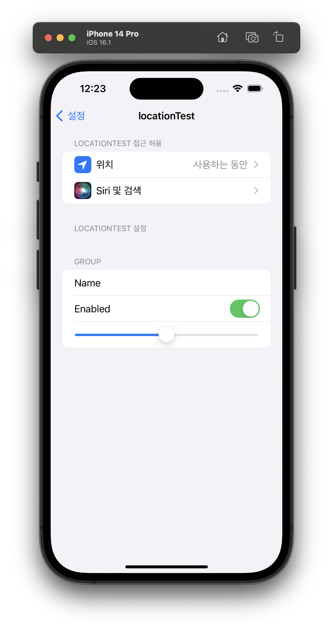 ๊ทธ๋์ Info.plist์ ํ์ํ ๊ฒ๋ค์ ์ถ๊ฐํด์ฃผ๊ณ , ํ์ ๋ฉ์์ง๋ ์ ์์ ์ผ๋ก ๋จ๊ณ .. ์์น ๊ถํ ์ํ๋ ์ ์์ ์ผ๋ก ๋์ค๋ ๊ฒ์ ํ์ธํ๋ค.