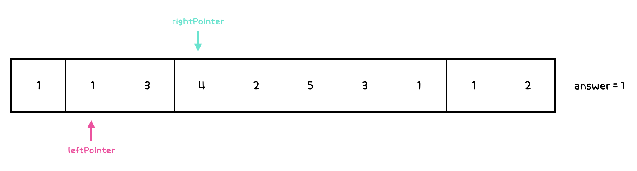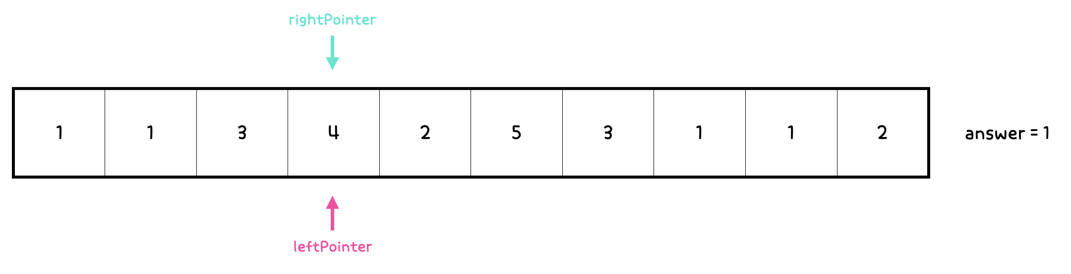 - answer를 1 증가시킨다. 그리고 rightPointer도 1 증가시킨다.