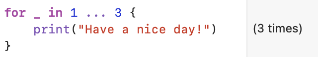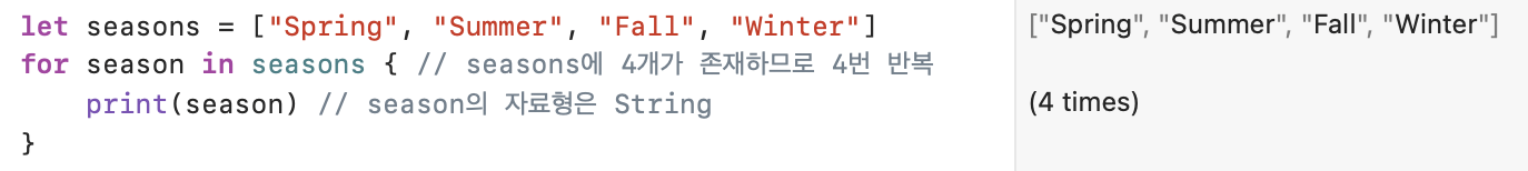Swift์ ๋ฐ๋ณต๋ฌธ์๋ for-in ๋ฌธ, while ๋ฌธ์ด ์๋ค.