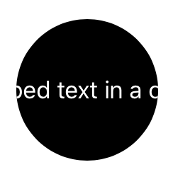 Text("Clipped text in a circle") .frame(width: 175, height: 100) .foregroundColor(Color.white) .background(Color.black) .clipShape(Circle())๊ฒฐ๊ณผ๋ฅผ ๋ณด๋ฉด, ์ ๋ฒ์ ๋ด์ ์๋ ํ ์คํธ ๋ถ๋ถ๋ง ํ์๋๋ค.