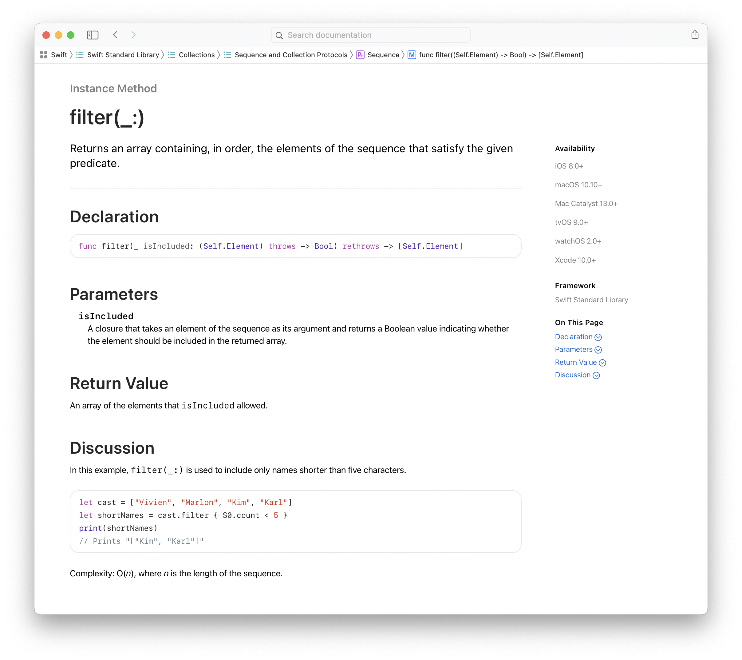 Swift์์ filter๋ ์ฃผ์ด์ง ์ํ์ค์ ์์๋ฅผ ์กฐ๊ฑด์ ๋ฐ๋ผ ์ถ์ถํ ํ์, ๊ทธ ๊ฐ๋ค์ ์์๋๋ก ๋ฐฐ์ด์ ํฌํจํ์ฌ ๋ฐํํ๋ค.