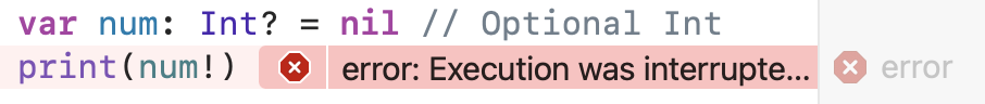 ๊ทธ๋ ๋ค๋ฉด, ๋ง์ฝ nil์ด ์ ์ฅ๋์ด์๋ ์ํ์์ ๊ฐ์ unwrapping ํ๋ ค๊ณ ํ๋ฉด ์ด๋ป๊ฒ ๋ ๊น?