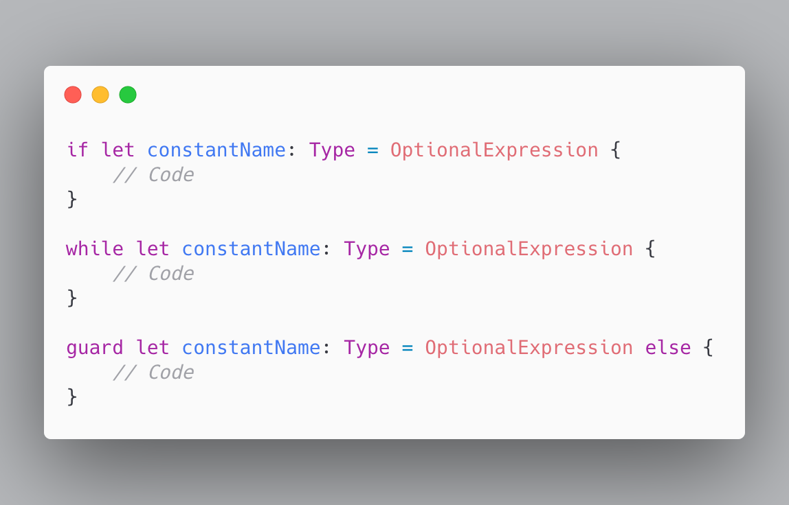 Optional Binding์ ์๋์ ๊ฐ์ด if, while, guard์์ ์ฌ์ฉ๋๋ค.