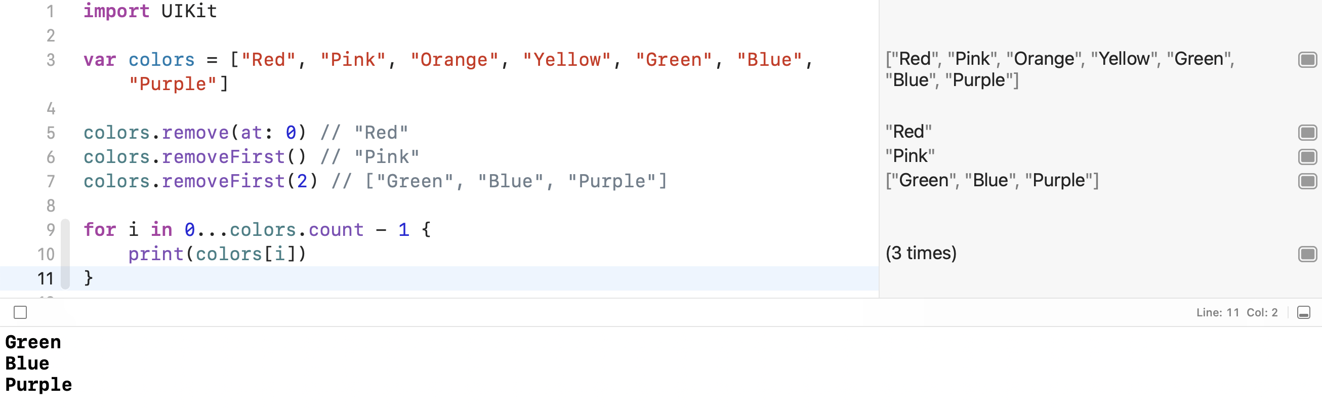 ë°°ìŽì ì ìŒ ìììë¶í° ìíë ê°¯ìë§íŒì ìì륌 ìì í 겜ì°, removeFirst(_:) ë©ìë륌 ìŽì©íë€.