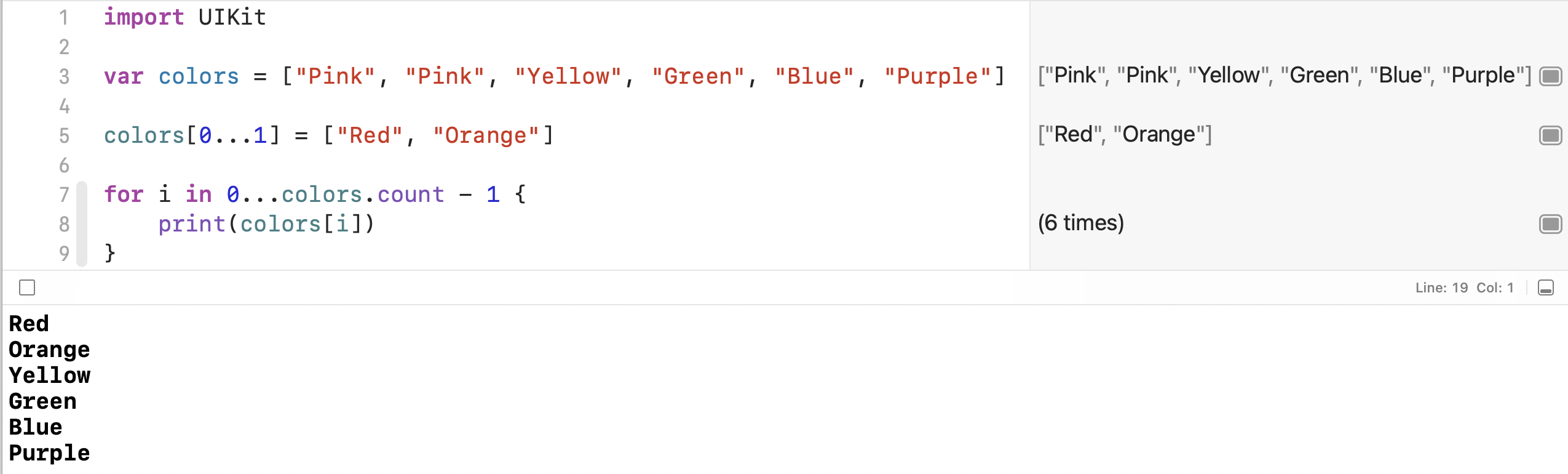 subscript륌 ìŽì©íì¬ ìì íêž° replaceSubrange(_:with:) ë©ìëë íëŒë¯ží°ë¡ ì ë¬ë ë²ìì ìì륌 ì ë¬ë 컬ë ì ìŒë¡ ë³ê²œíë€.
