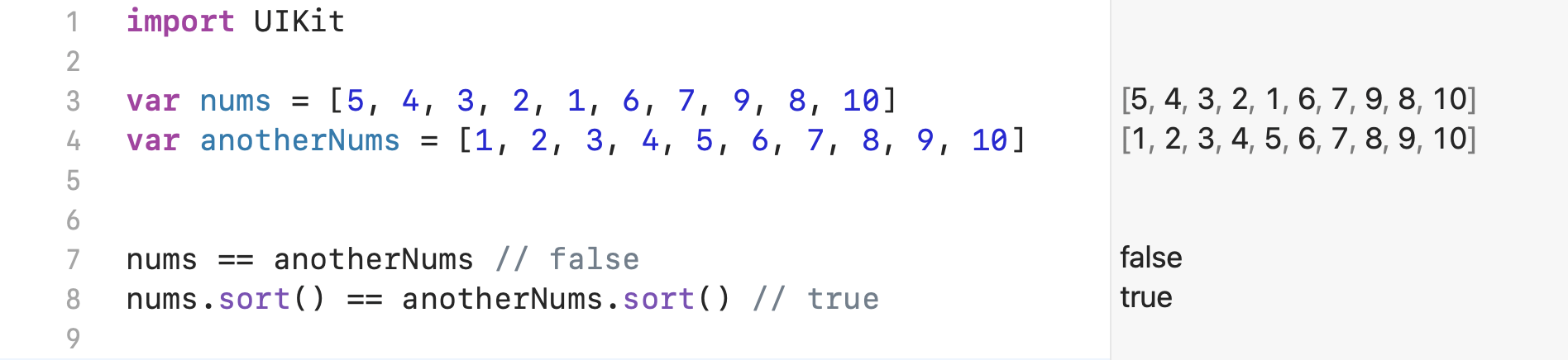 // #1. ë°°ìŽ ëŠ¬í°ëŽë¡ ì ì ë°°ìŽ ì ìžíêž° let nums = [1, 2, 3] // #2. ë¹ ë°°ìŽ ë§ë€êž° (ë¹ ëŠ¬í°ëŽ -> íì ìŽë ží ìŽì íì) let emptyArray : [Int] = [] // #3. ìì±ì ì¬ì©íŽì ë§ë€êž° (ì ì 묞ë²) let emptyArray2 = Array<Int>() // #4. ëšì¶ ë¬žë² let emptyArray3 = [Int]() // #5. ë°°ìŽ ë§ë í Ʞ볞ê°ìŒë¡ ì±ì°êž° // 첫ë²ì§ž íëŒë¯ží°: ë°°ìŽ ì±ìž Ʞ볞ê°, ëë²ì§ž íëŒë¯ží°: ë°°ìŽ ì±ìž ììì ì«ì let zeroArray = [Int](repeating: 0, count: 10) // 0ìŽ 10ê° ì±ìì§ int ë°°ìŽë°°ìŽì ë°ìŽí°ë¥Œ ììëë¡ ì ì¥íë Ordered CollectionìŽë€.
