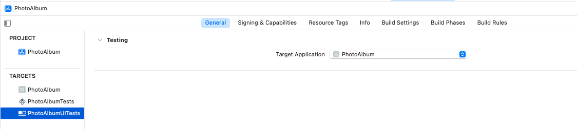 General -> Testing -> Target Application์ None์ผ๋ก ์ค์ ํ๋ค๊ฐ,
