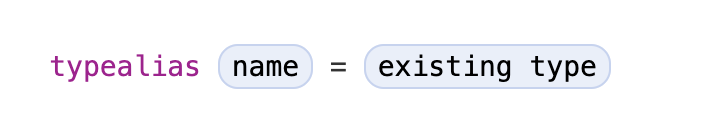 type alias๊ฐ ์ ์ธ๋๊ณ ๋๋ฉด, ์๋กญ๊ฒ ์์ฑ๋ ์ด๋ฆ (name)์ ๊ธฐ์กด ํ์ (exisisting type) ๋์ ์ ํ๋ก๊ทธ๋จ์์ ์ฌ์ฉ๋ ์ ์๋ค.